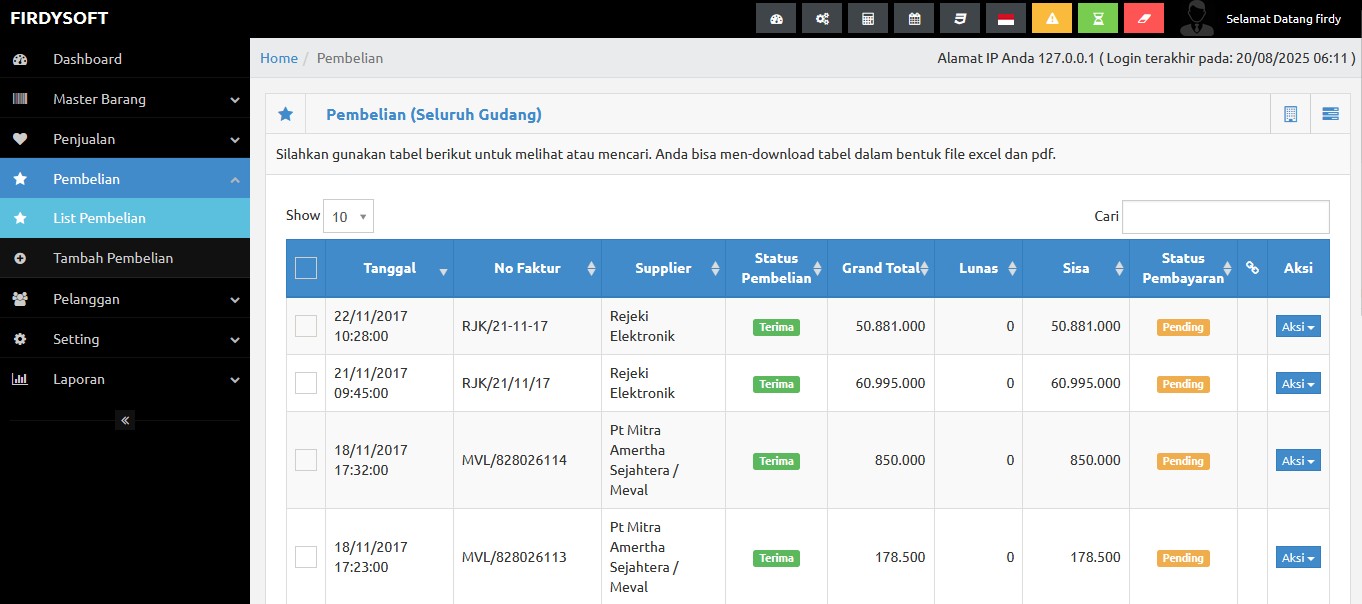 Software kami membantu Anda mengelola penjualan, stok, dan akuntansi dengan mudah. Hemat waktu, minim kesalahan, dan tingkatkan profit bisnis Anda.