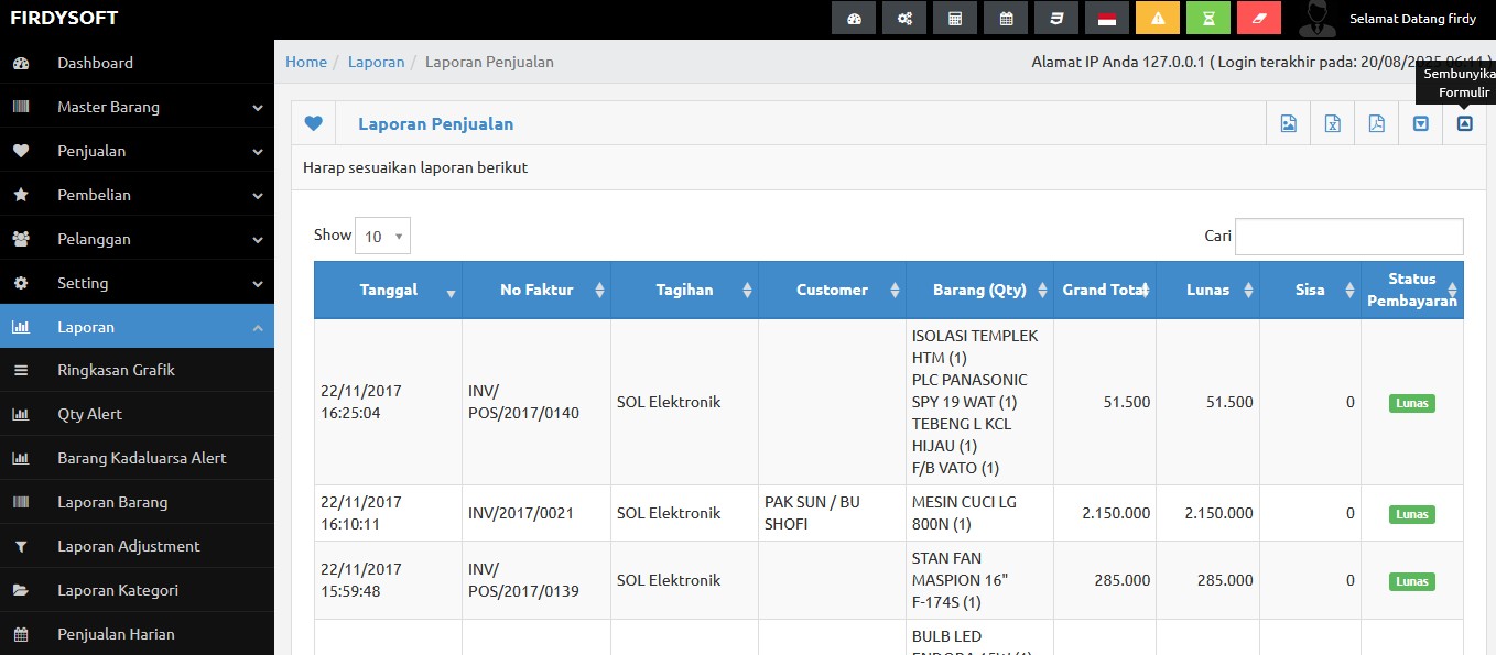 • Multi user dengan hak akses berbeda (kasir, supervisor, admin).
